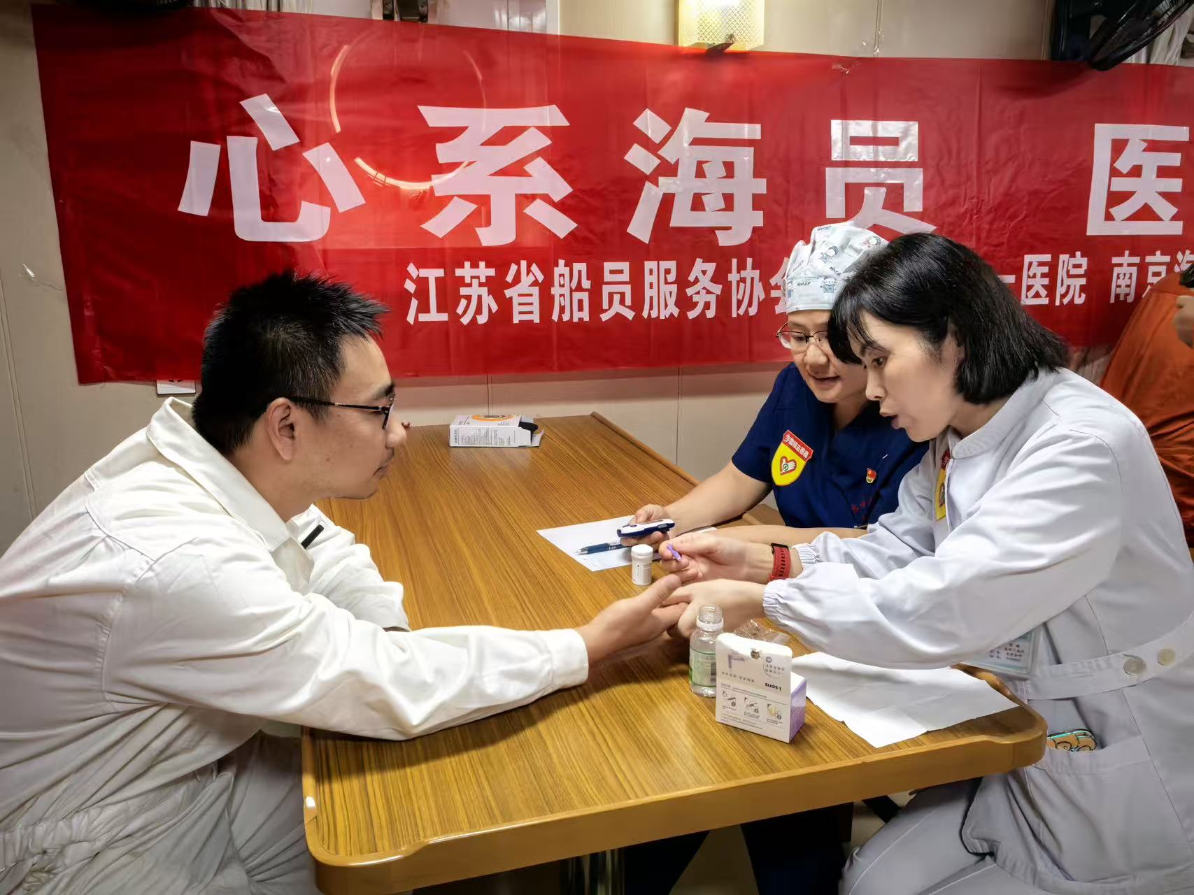 随后,医疗团队在船公司安排的义诊区域为船员提供了包括心血管内科、骨科/康复医学科、消化内科、皮肤科、心理咨询等多个专科的健康咨询与诊疗服务,并开展了血压、血糖等基础检查。专家们耐心解答船员疑问,提供个性化健康建议,同时开展常见疾病预防知识宣教,增强船员的自我保健意识。